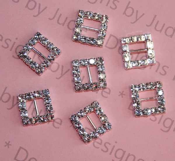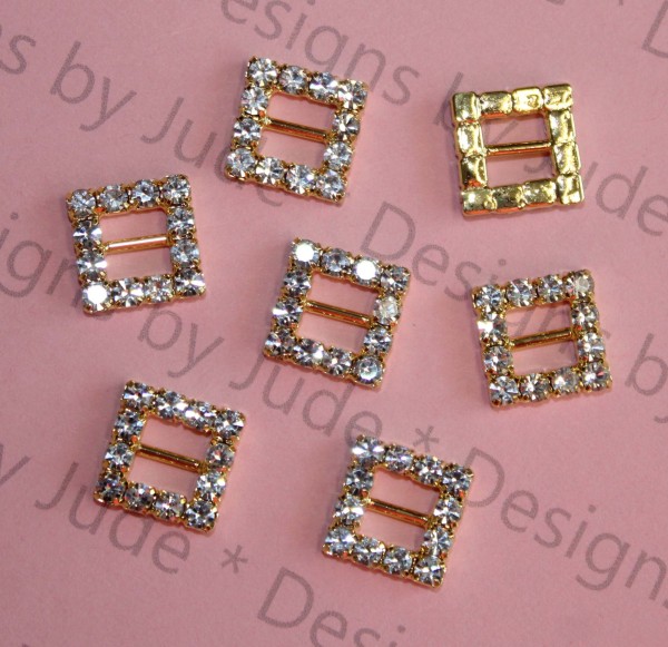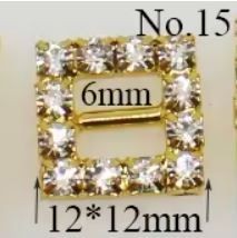 1 per package. It's a 12mm x 12mm square rhinestone buckle. Opening measure 6mm. Available in gold-tone or silver.