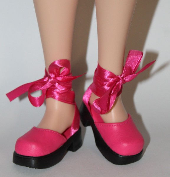 Pretty Dark Pink Lace-Up Ballet Shoes with a platform heel. These fit Smart Doll & Kaye Wiggs, size 63… + More