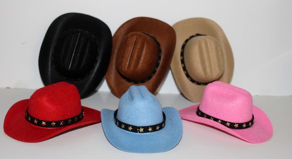 Up for consideration is the perfect cowboy hat to complete your "Giddy-Up" western look. These adorable flocked hats are available in six colors.