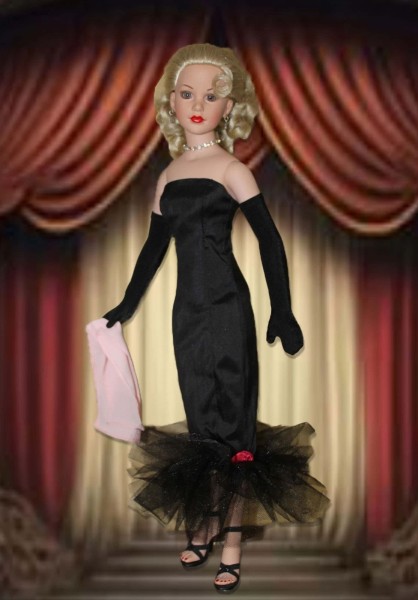 Up for your consideration is In the Spotlight for 18" Kitty Collier. The iconic Barbie outfit from the 1960s inspired the outfit. The ensemble features a fully lined strapless dress with tulle ruffles at the hem, opera-length gloves, and a scarf. The dress has a zipper closure. The items were made from a pattern by the same name. A sewing tutorial for this pattern is available on our Designs by Jude YouTube channel.