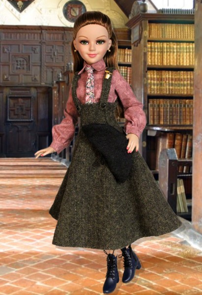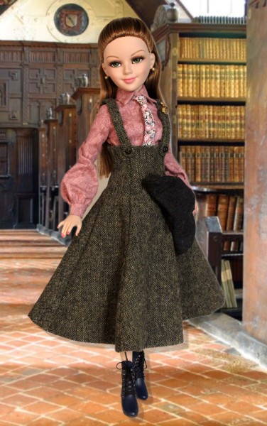 Up for consideration is Oxford Society for 16" Ellowyne. The outfit features a butterfly button-up top, a wool blend high-waisted skirt with straps, a necktie, and a beret. The items were made from a pattern by the same name.