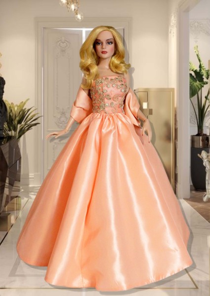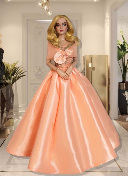 Up for consideration is a peach taffeta & gold gown for 16.5" RTB101 dolls. The gown is fully lined with a snap closure with a peach and gold wrap.