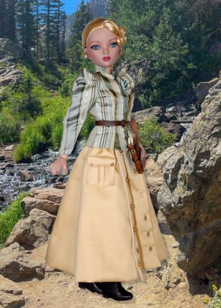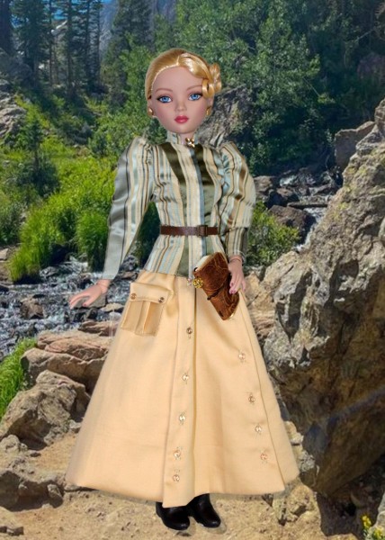 Up for your consideration is Summit View for 16" Ellowyne & Neema dolls. The ensemble features a fully lined top with a stand-up collar, double-gathered voluminous sleeves with a front closure, a fully lined ankle-length skirt with a button detail, and large pockets to carry travel essentials while still maintaining a feminine silhouette. Note: Ellowyne's hands need to be removed to slip the jacket on.The items were made from the Summit View sewing pattern.