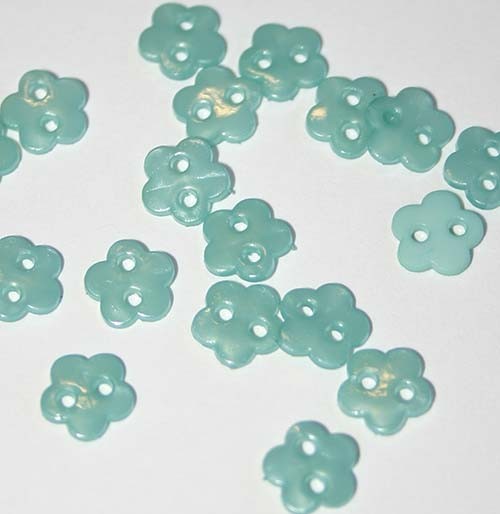 Up for consideration is a 1/4" mint gloss flower shaped sew through button. 5 buttons per pack.