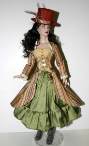 Up for consideration is Feeling Steamed, a steampunk pattern designed to fit Robert Tonner's 16" Tyler Fashion dolls. The pattern includes a fitted bustier with front snap closure, 3/4 length skirt with ruffle, long coat and top hat. This design is also available for Ellowyne Wilde. The pdf version prints on A4 and 8 1/2 x 14 legal size paper. |