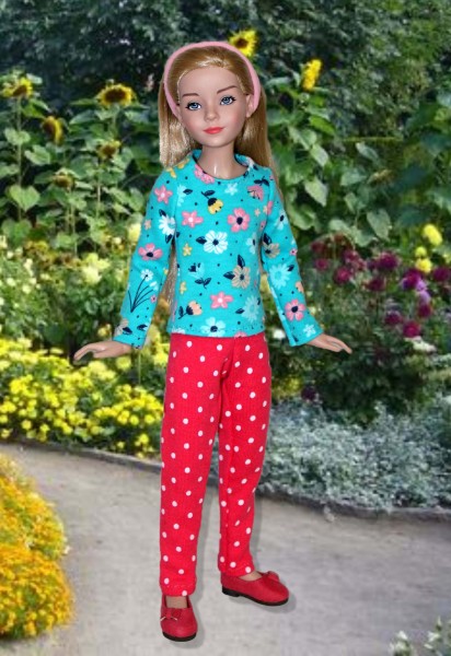 Floral Top & Polka Dot Pants for 12" Anne Dolls