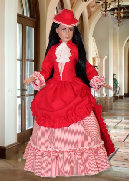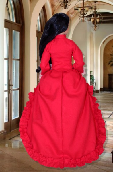 Up for consideration is Gilded Age for 12" Marley dolls. The pattern features a fully lined jacket with a front inset, high collar, and trumpet sleeves. The floor-length skirt has an attached overskirt with a gathered front apron and cascading back train with a delicate ruffled edge. The look is perfected with an optional neck scarf and teardrop hat. There is a sewing tutorial for this pattern on our Designs by Jude YouTube channel.