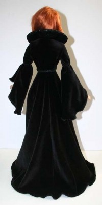 Up for consideration is Hallows Night, a new pattern for the 22" American Model dolls featuring a an overly long robe with draped sleeve and wide collar. The bodice is lined and the robe closes at the front. Pattern is designed to be used with stretch fabrics such as velour, metallic knits and knit chenille. The collar can be faux fur or velvet. Notions needed are 2 snap sets and ribbon for the waist belt. This design is also available for the 17" vinyl and 19" resin Evangeline. The pdf version prints on A4 and 8 1/2 x 14 legal size paper.