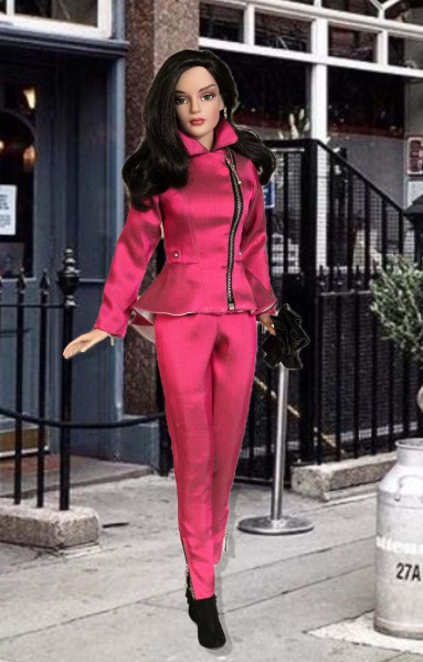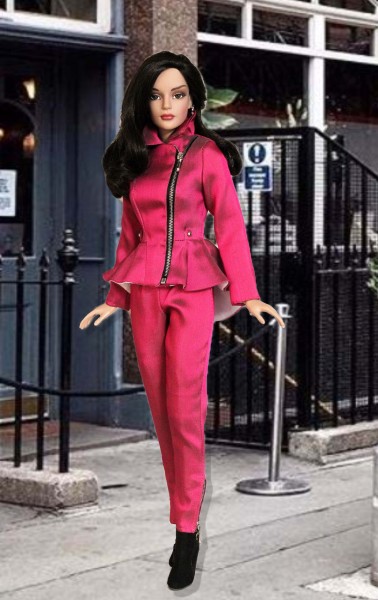 Up for consideration is Moto Style for RTB101 dolls. The hot pink ensemble includes an asymmetrical zippered jacket with attached peplum and stud detail paired with slim-fitting coordinating pants with zippers at the ankle. The items were made from the Moto Style pattern.