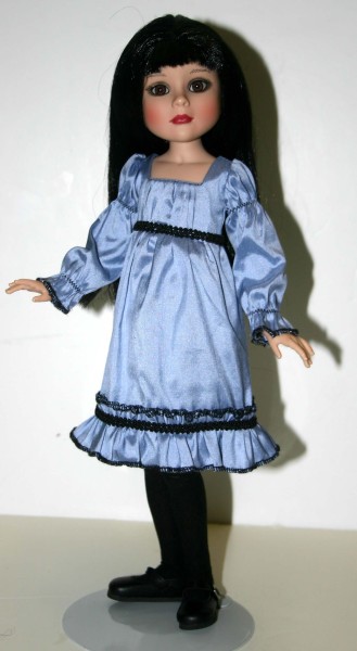 Up for consideration is Moody & Blue, a new pattern for the 14.5" Flexi Pose dolls featuring a empire waisted dress with double gathered long sleeves, three layer cape with collar, tights and a bonnet. This design is also available for Evangeline, Ellowyne, Marley, 15.25" Maudlynne Macabre and 16" ABJD dolls.Pattern is designed to be used with silks, satins, cotton blends and nylon. Notions needed are 3 snap sets and 1 hook and eye set and satin ribbon. PDF version prints on A4 and 8 1/2 x 14 legal size paper.