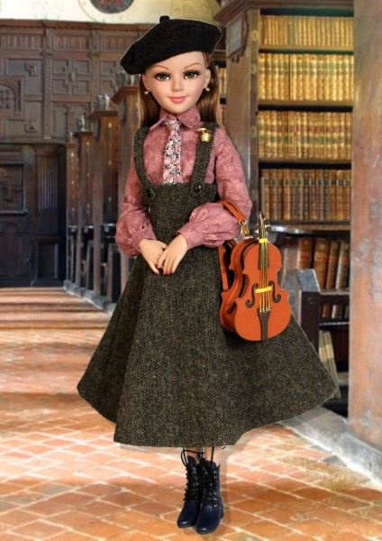 Up for consideration is Oxford Society for 16" Ellowyne. The outfit features a butterfly button-up top, a wool blend high-waisted skirt with straps, a necktie, and a beret. The items were made from a pattern by the same name.