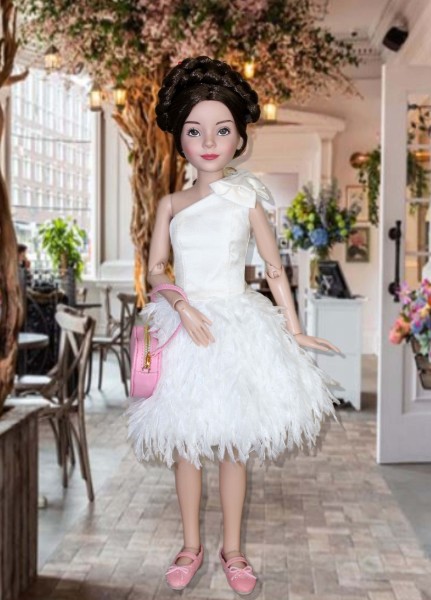 Up for consideration is a white silk single shoulder dress with a textured bubble skirt for 12" Anne dolls. The dress fr… + More