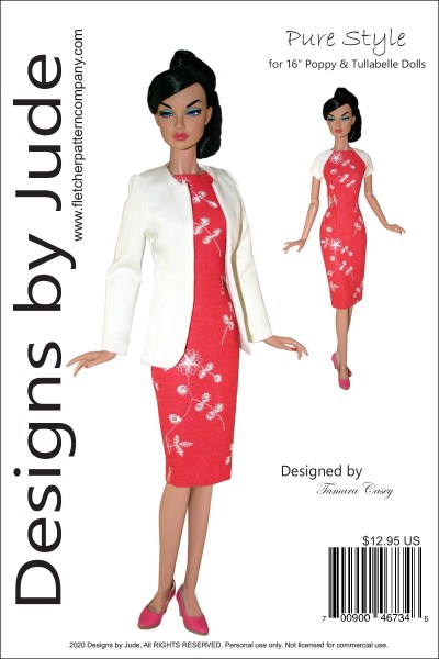 Up for consideration is Pure Style, a pattern to make a tapered semi-fitted short sleeve dress that falls just to the knee and an open front long sleeve jacket with princess seams for 16" Poppy Parker & Tullabelle fashion dolls. Both items are fully lined and the dress has a zipper back closure. This pattern design is also available for other fashion dolls. The PDF version of this pattern prints on A4 and 8 1/2 x 14 legal size paper.