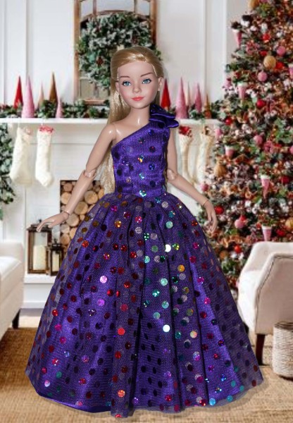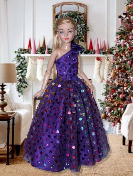 Up for consideration is a purple gown with shiny hologram dots for Anne. The item was made from the Statement Piece pa… + More