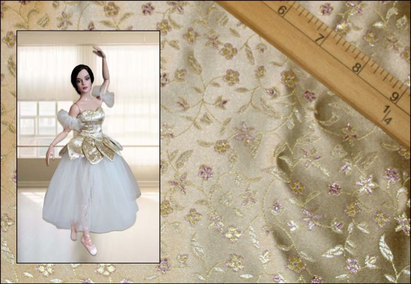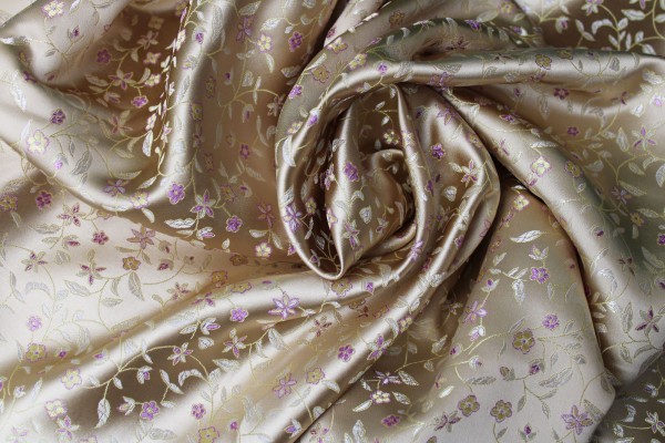Vivienne Cream & Purple Floral Brocade Chinese Satin Fabric